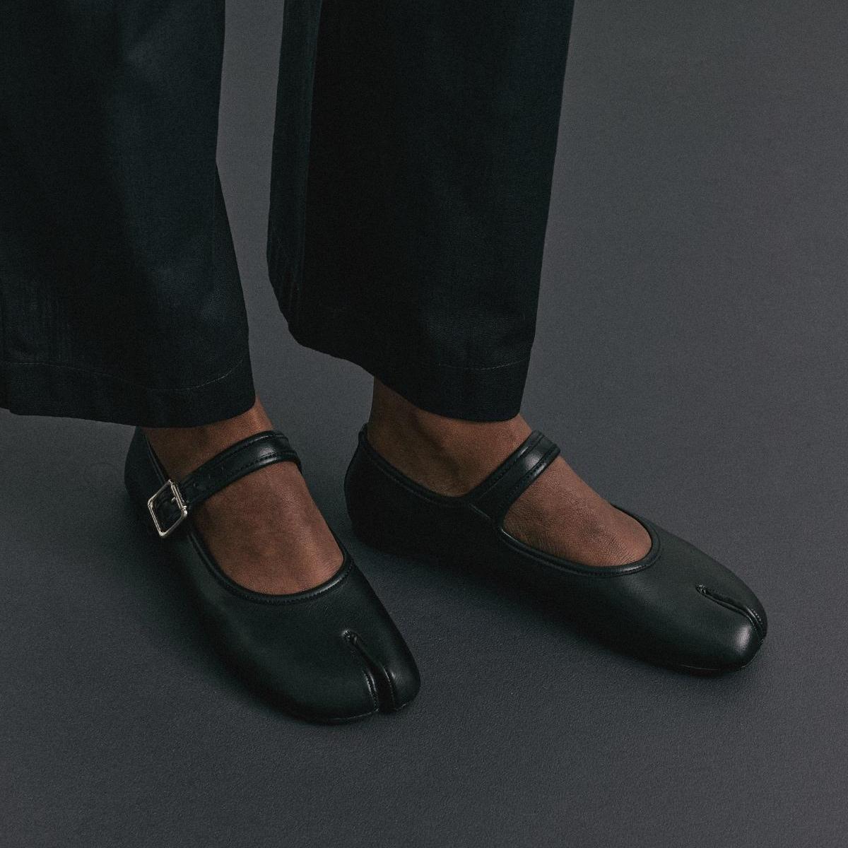 Design: Split-toe loafer with a chic strap & silver buckle