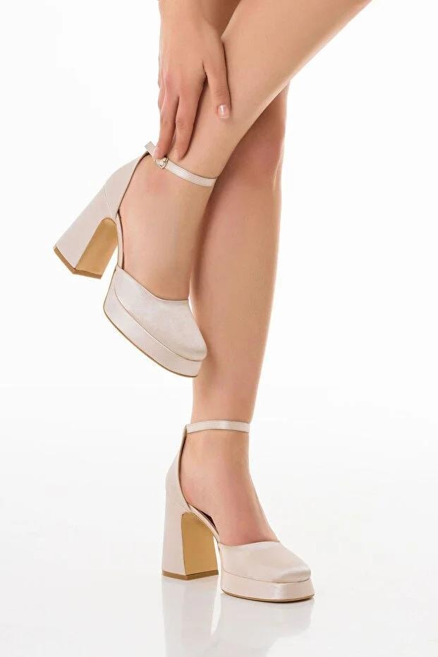 Handmade beige satin Wedding Heels: Comfortable Block Heel Bridal Shoes