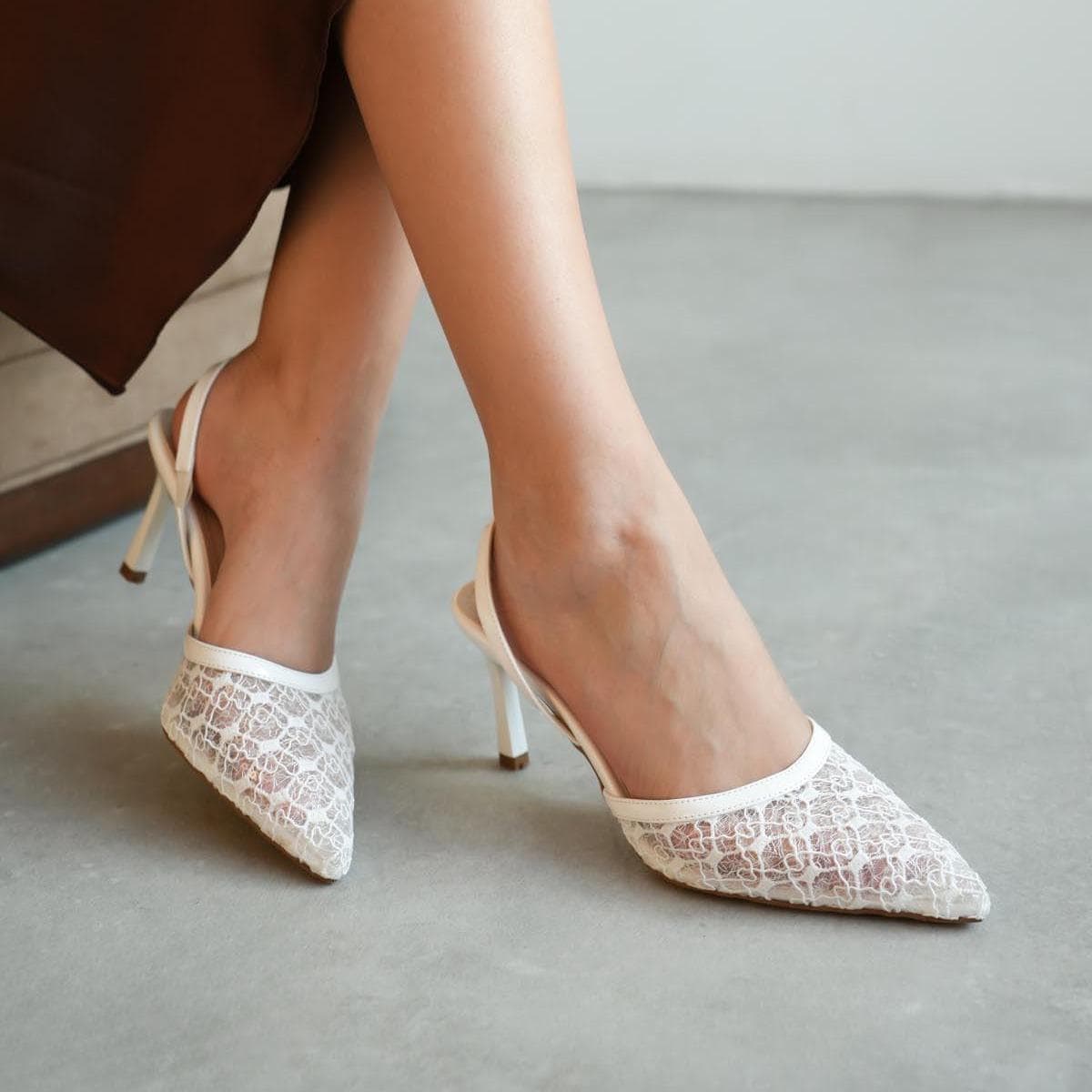 White Lace Bridal Heels – Elegant Pointed Toe Wedding Pumps