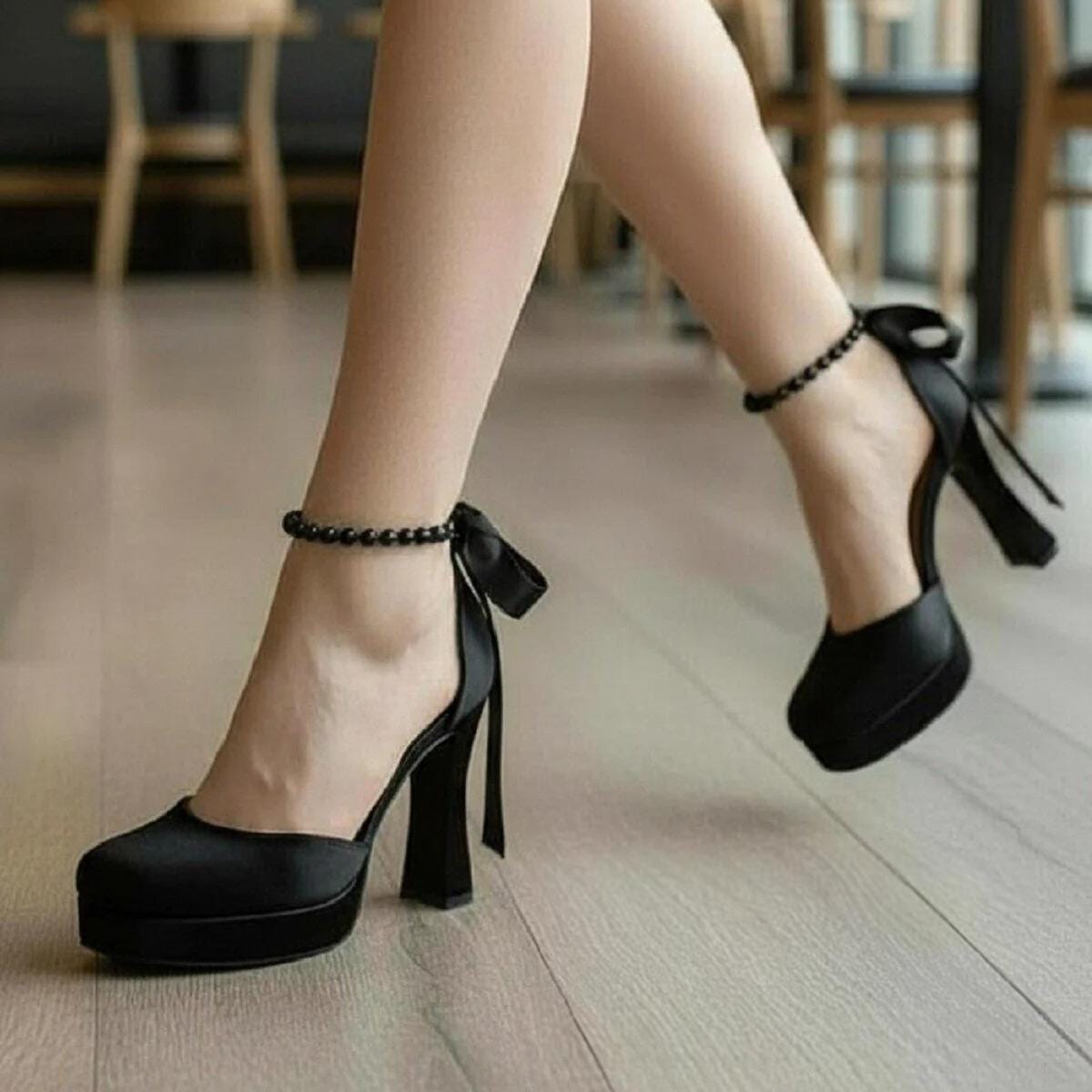 Featuring a delicate pearl-embellished ankle strap and a sleek, thin heel design, these shoes offer a graceful silhouette while adding a romantic sparkle to your look. Ideal not only for weddings and civil ceremonies, but also for special occasions and formal events.