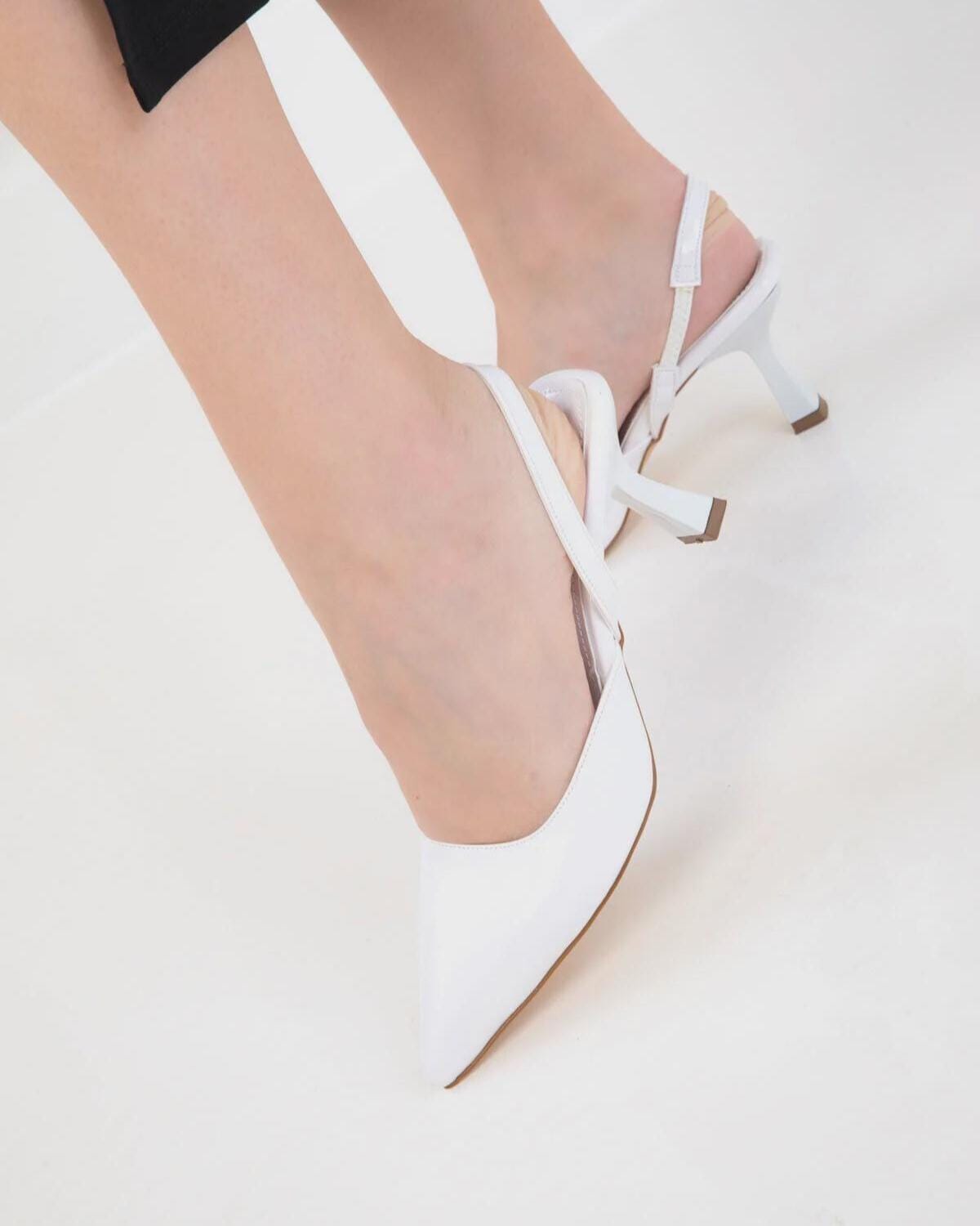 White Patent Leather Slingback Heels, Pointed Toe Stiletto, Elegant Bridal Shoes